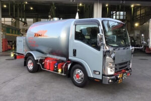 ガスという危険物を扱うため、車両点検も欠かせません。タイヤやブレーキ、積載状態を確認し、問題がないことを確かめてから出発します。